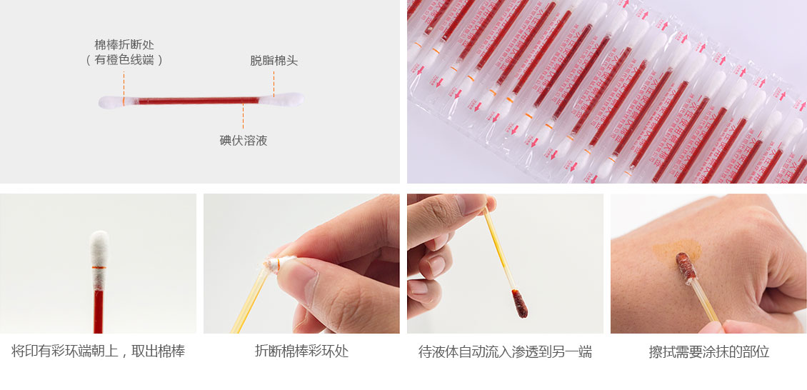 主要結(jié)構(gòu):本產(chǎn)品由棉簽頭、棉簽桿,聚維酮碘溶液組成。